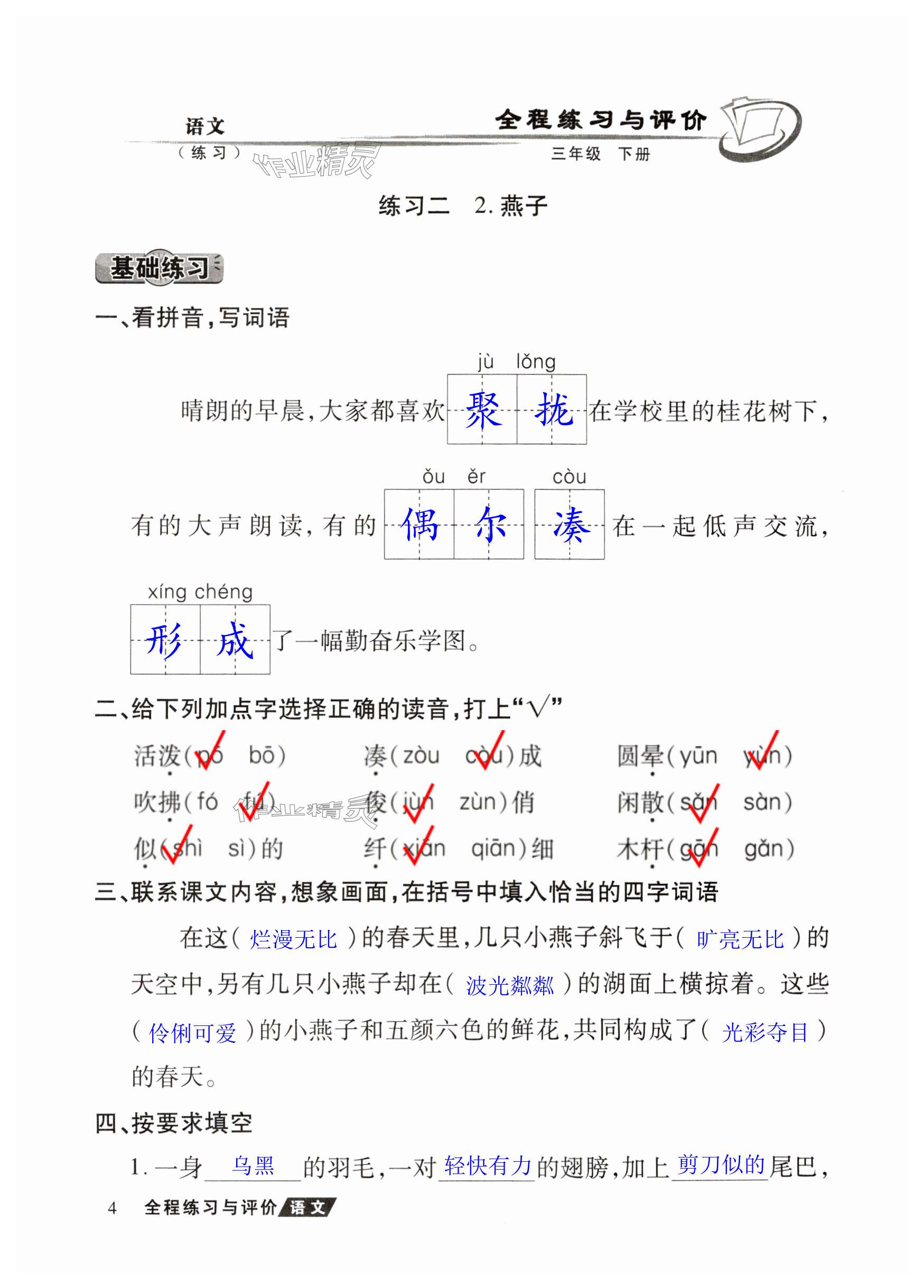 注:目前有些书本章节名称可能整理的还不是很完善,但都是按照顺序排列的,请同学们按照顺序仔细查找。练习册 2025年全程练习与评价三年级语文下册人教版练习版 答案主要是用来给同学们做完题方便对答案用的,请勿直接抄袭。