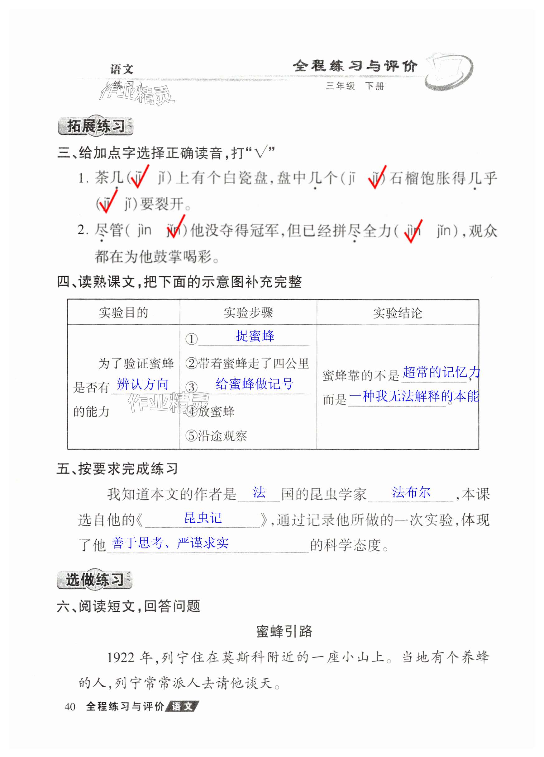 注:目前有些书本章节名称可能整理的还不是很完善,但都是按照顺序排列的,请同学们按照顺序仔细查找。练习册 2025年全程练习与评价三年级语文下册人教版练习版 答案主要是用来给同学们做完题方便对答案用的,请勿直接抄袭。