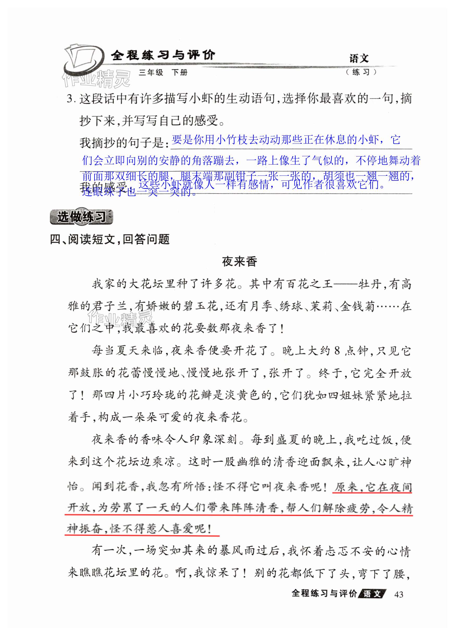 注:目前有些书本章节名称可能整理的还不是很完善,但都是按照顺序排列的,请同学们按照顺序仔细查找。练习册 2025年全程练习与评价三年级语文下册人教版练习版 答案主要是用来给同学们做完题方便对答案用的,请勿直接抄袭。