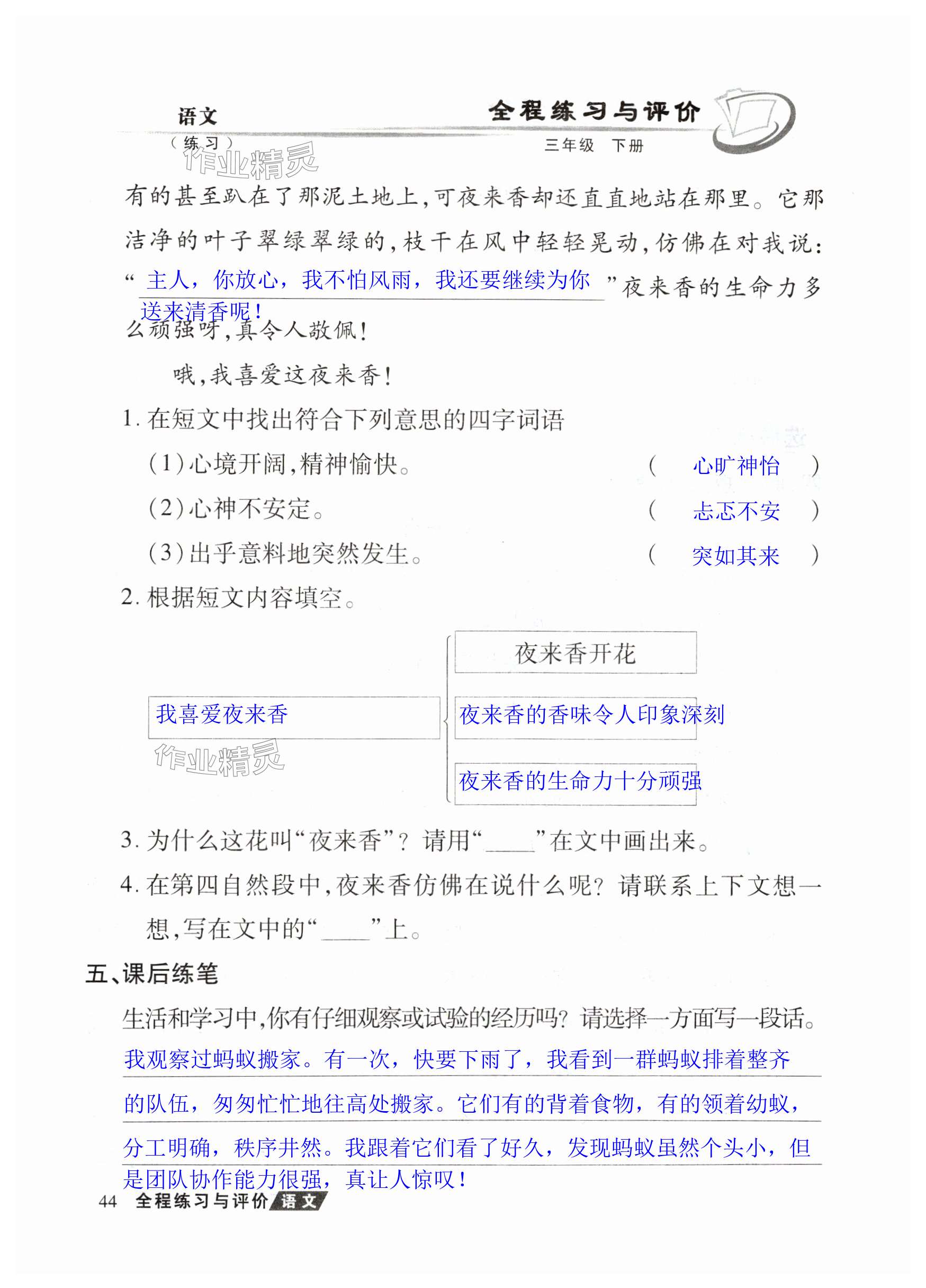注:目前有些书本章节名称可能整理的还不是很完善,但都是按照顺序排列的,请同学们按照顺序仔细查找。练习册 2025年全程练习与评价三年级语文下册人教版练习版 答案主要是用来给同学们做完题方便对答案用的,请勿直接抄袭。