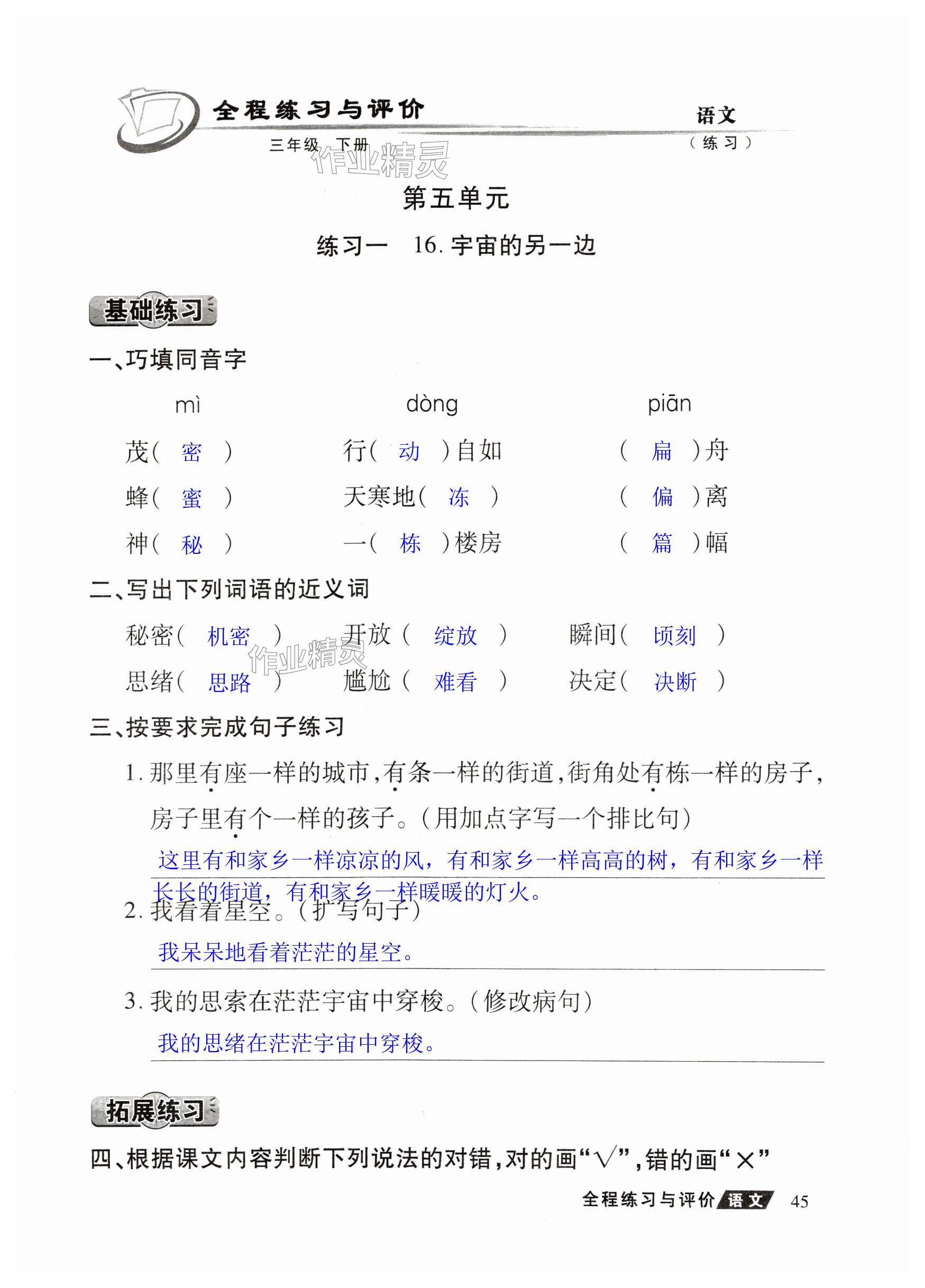 注:目前有些书本章节名称可能整理的还不是很完善,但都是按照顺序排列的,请同学们按照顺序仔细查找。练习册 2025年全程练习与评价三年级语文下册人教版练习版 答案主要是用来给同学们做完题方便对答案用的,请勿直接抄袭。
