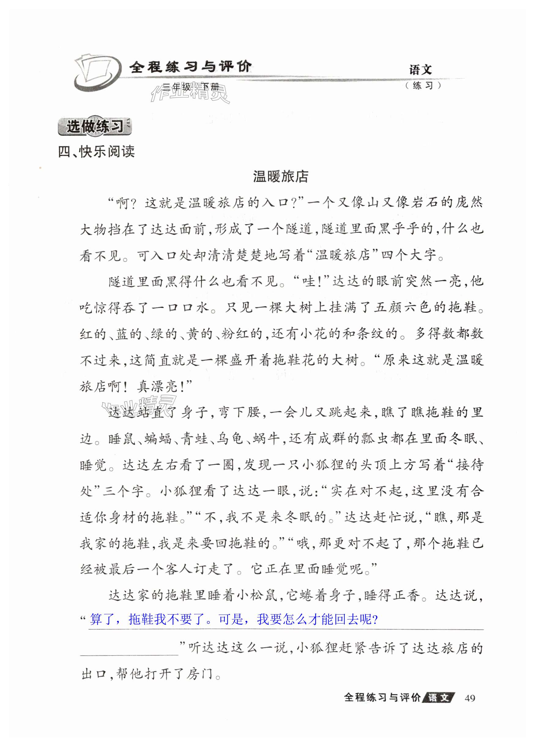 注:目前有些书本章节名称可能整理的还不是很完善,但都是按照顺序排列的,请同学们按照顺序仔细查找。练习册 2025年全程练习与评价三年级语文下册人教版练习版 答案主要是用来给同学们做完题方便对答案用的,请勿直接抄袭。