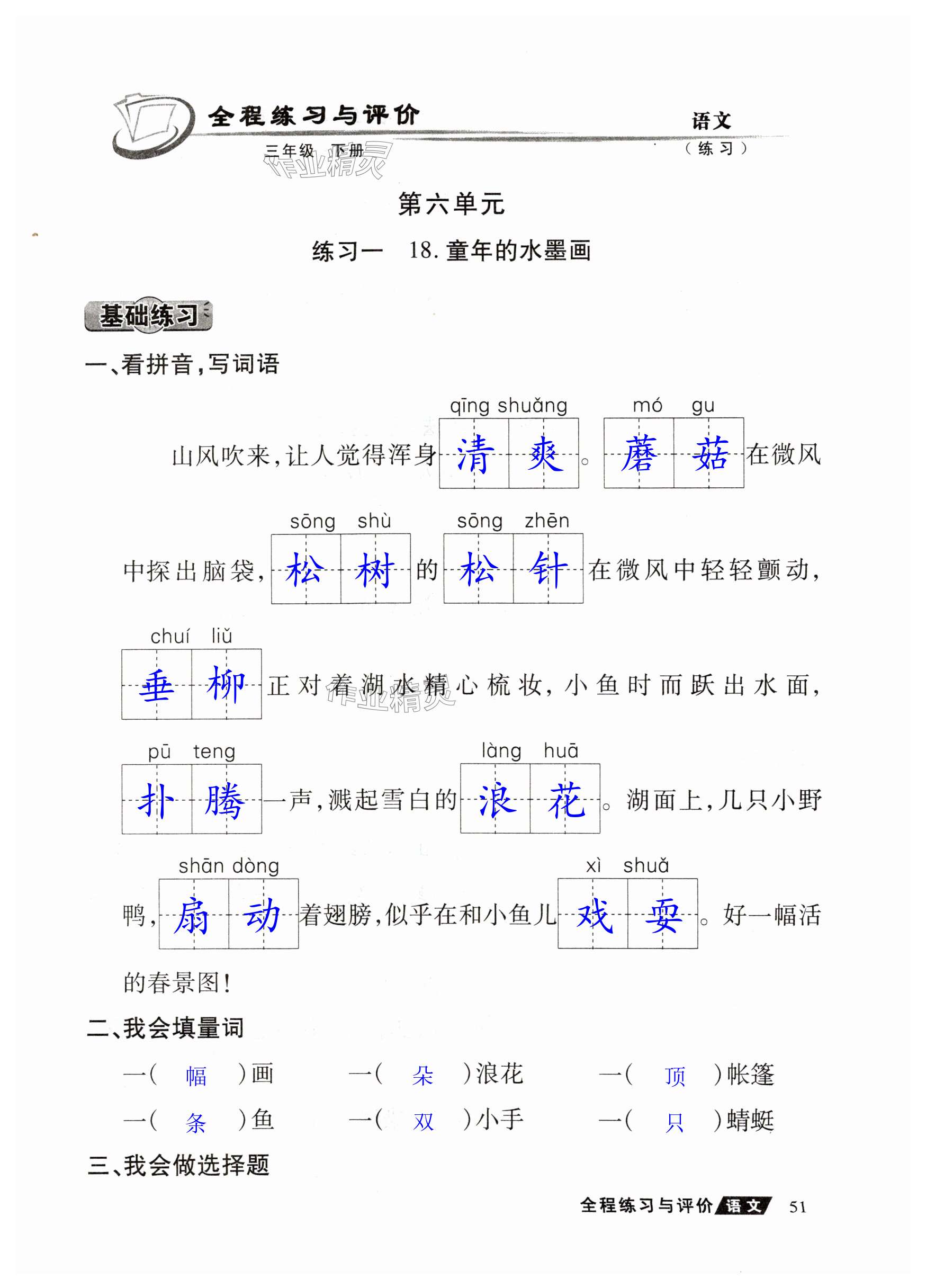 注:目前有些书本章节名称可能整理的还不是很完善,但都是按照顺序排列的,请同学们按照顺序仔细查找。练习册 2025年全程练习与评价三年级语文下册人教版练习版 答案主要是用来给同学们做完题方便对答案用的,请勿直接抄袭。