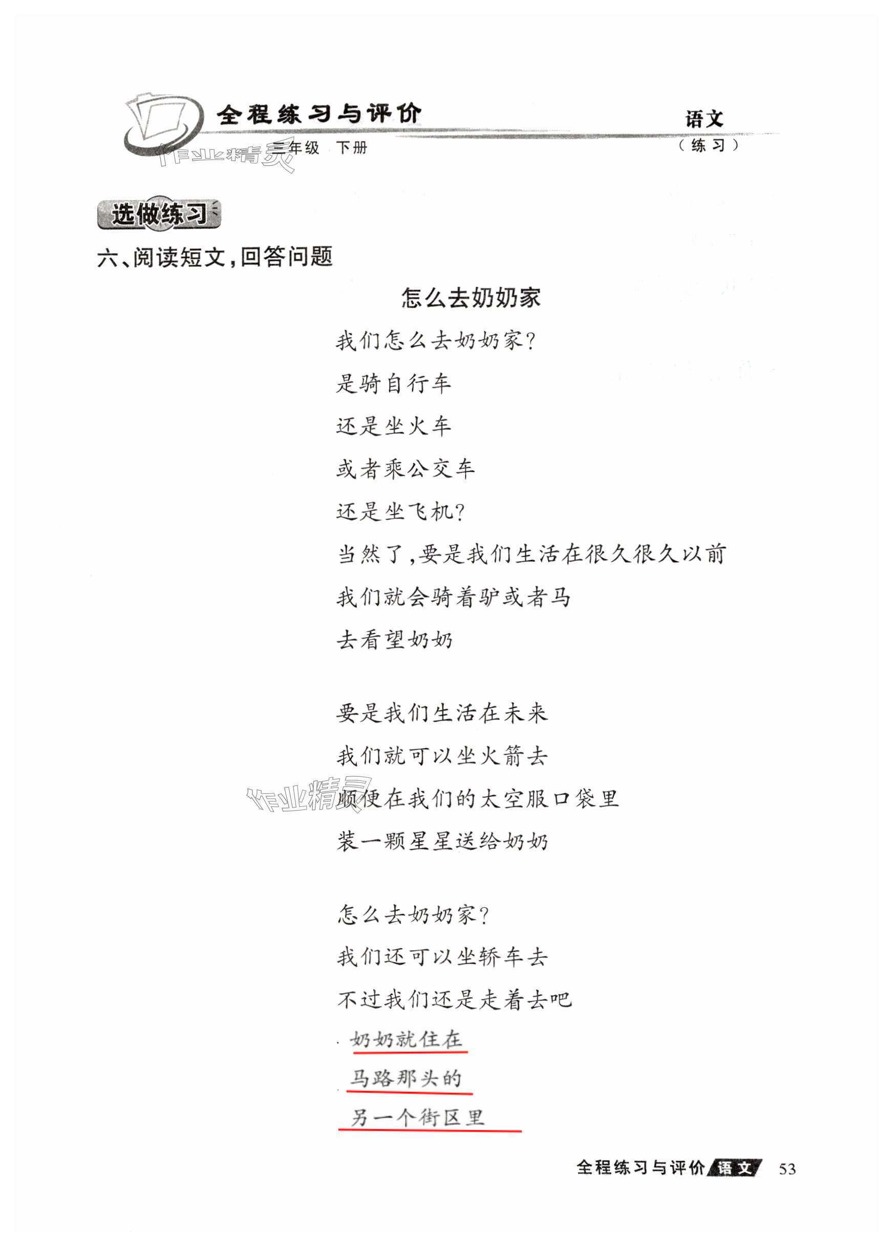 注:目前有些书本章节名称可能整理的还不是很完善,但都是按照顺序排列的,请同学们按照顺序仔细查找。练习册 2025年全程练习与评价三年级语文下册人教版练习版 答案主要是用来给同学们做完题方便对答案用的,请勿直接抄袭。