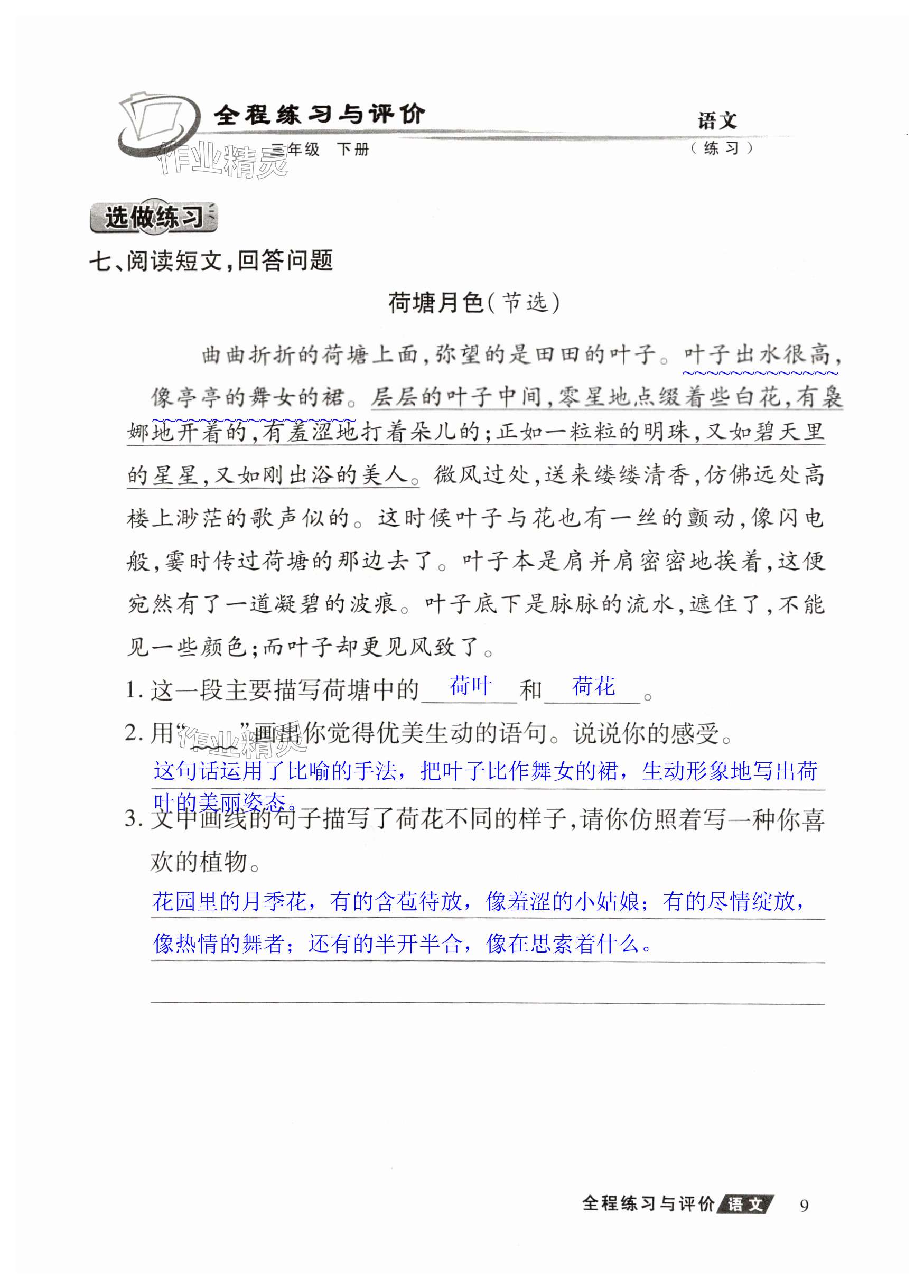 注:目前有些书本章节名称可能整理的还不是很完善,但都是按照顺序排列的,请同学们按照顺序仔细查找。练习册 2025年全程练习与评价三年级语文下册人教版练习版 答案主要是用来给同学们做完题方便对答案用的,请勿直接抄袭。