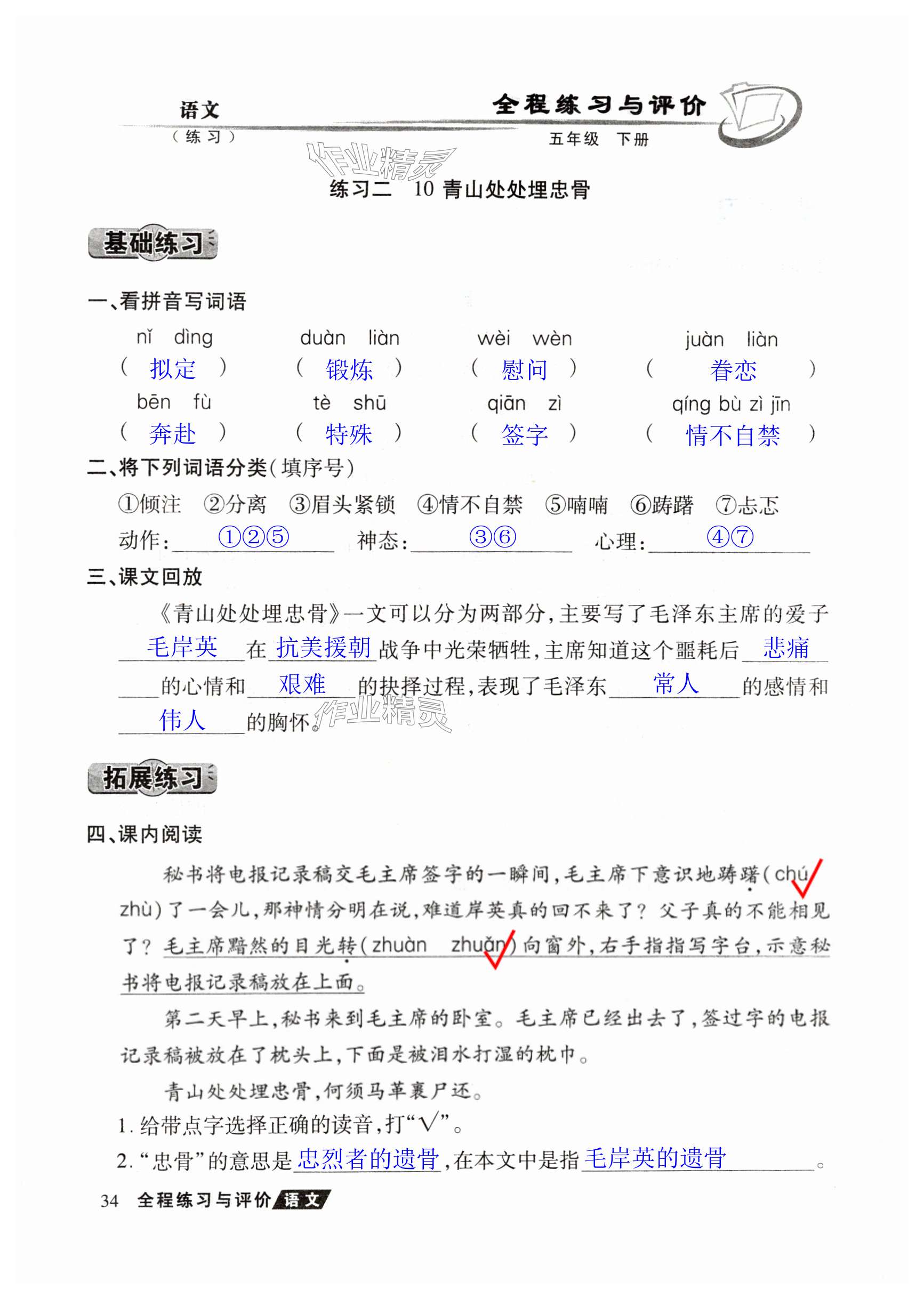 注:目前有些书本章节名称可能整理的还不是很完善,但都是按照顺序排列的,请同学们按照顺序仔细查找。练习册 2025年全程练习与评价五年级语文下册人教版练习版 答案主要是用来给同学们做完题方便对答案用的,请勿直接抄袭。