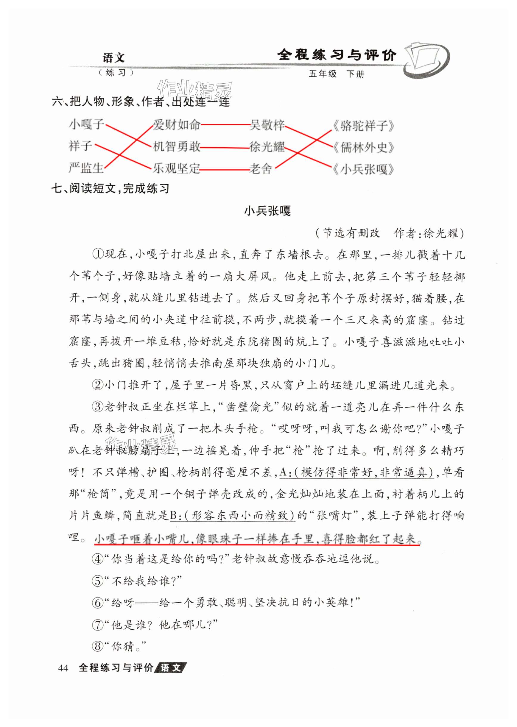注:目前有些书本章节名称可能整理的还不是很完善,但都是按照顺序排列的,请同学们按照顺序仔细查找。练习册 2025年全程练习与评价五年级语文下册人教版练习版 答案主要是用来给同学们做完题方便对答案用的,请勿直接抄袭。