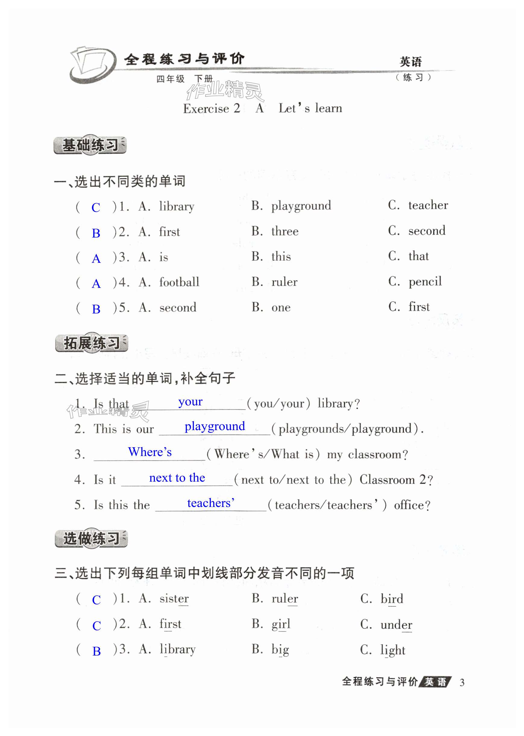 注:目前有些书本章节名称可能整理的还不是很完善,但都是按照顺序排列的,请同学们按照顺序仔细查找。练习册 2025年全程练习与评价四年级英语下册人教版练习版 答案主要是用来给同学们做完题方便对答案用的,请勿直接抄袭。