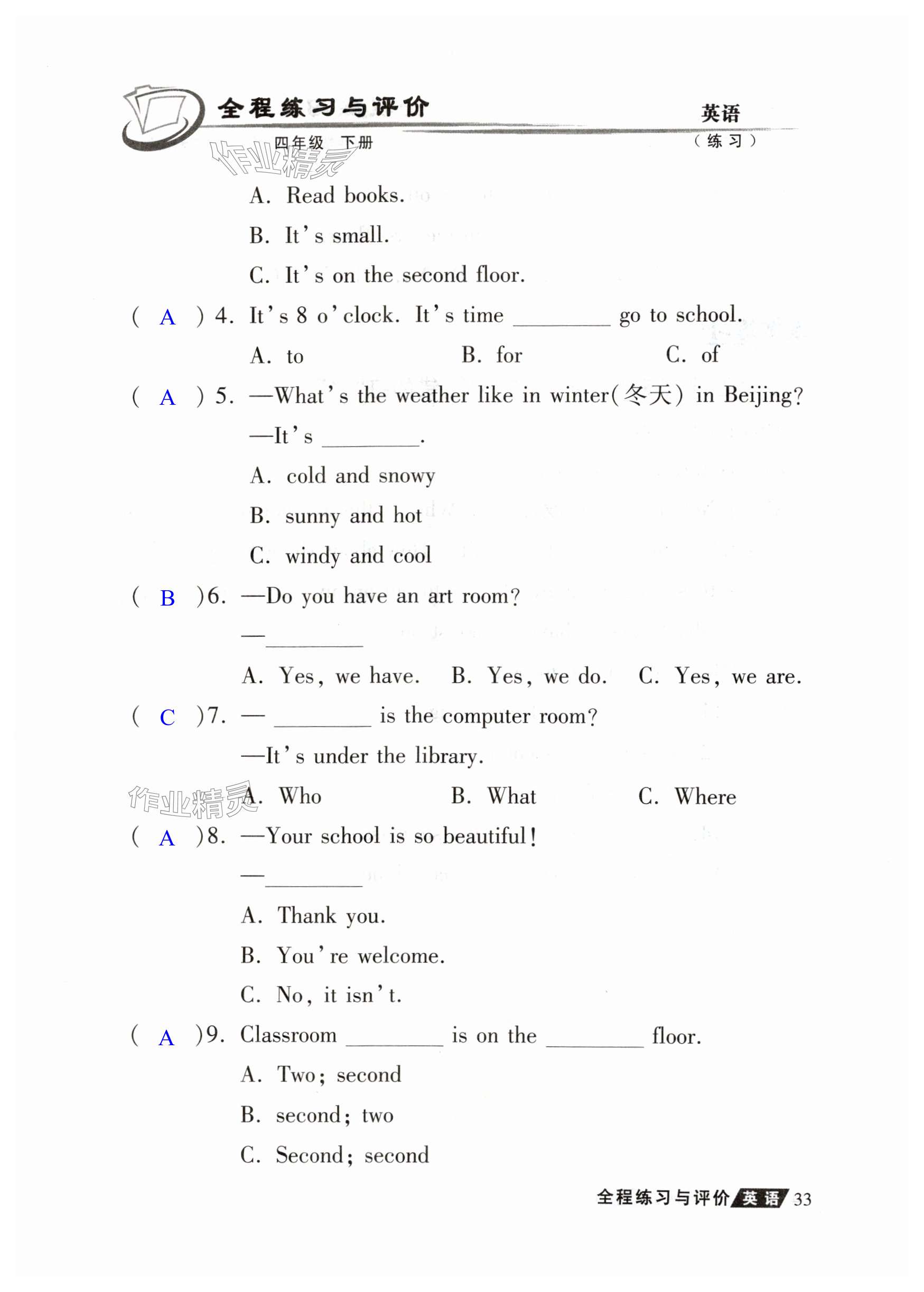 注:目前有些书本章节名称可能整理的还不是很完善,但都是按照顺序排列的,请同学们按照顺序仔细查找。练习册 2025年全程练习与评价四年级英语下册人教版练习版 答案主要是用来给同学们做完题方便对答案用的,请勿直接抄袭。