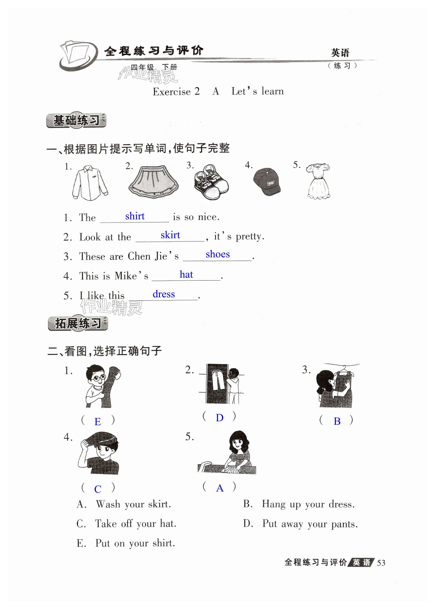 注:目前有些书本章节名称可能整理的还不是很完善,但都是按照顺序排列的,请同学们按照顺序仔细查找。练习册 2025年全程练习与评价四年级英语下册人教版练习版 答案主要是用来给同学们做完题方便对答案用的,请勿直接抄袭。