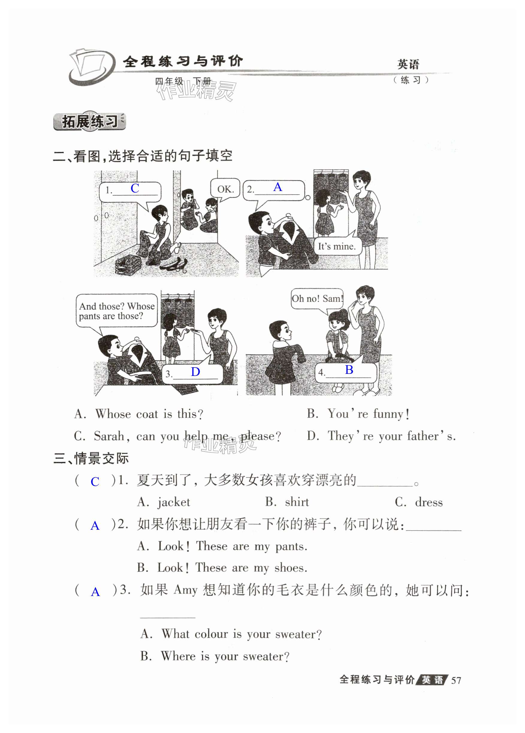 注:目前有些书本章节名称可能整理的还不是很完善,但都是按照顺序排列的,请同学们按照顺序仔细查找。练习册 2025年全程练习与评价四年级英语下册人教版练习版 答案主要是用来给同学们做完题方便对答案用的,请勿直接抄袭。