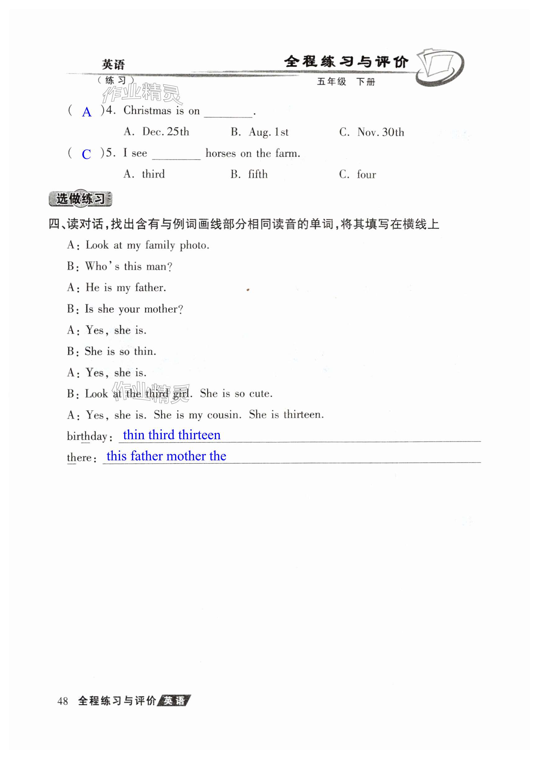 注:目前有些书本章节名称可能整理的还不是很完善,但都是按照顺序排列的,请同学们按照顺序仔细查找。练习册 2025年全程练习与评价五年级英语下册人教版练习版 答案主要是用来给同学们做完题方便对答案用的,请勿直接抄袭。
