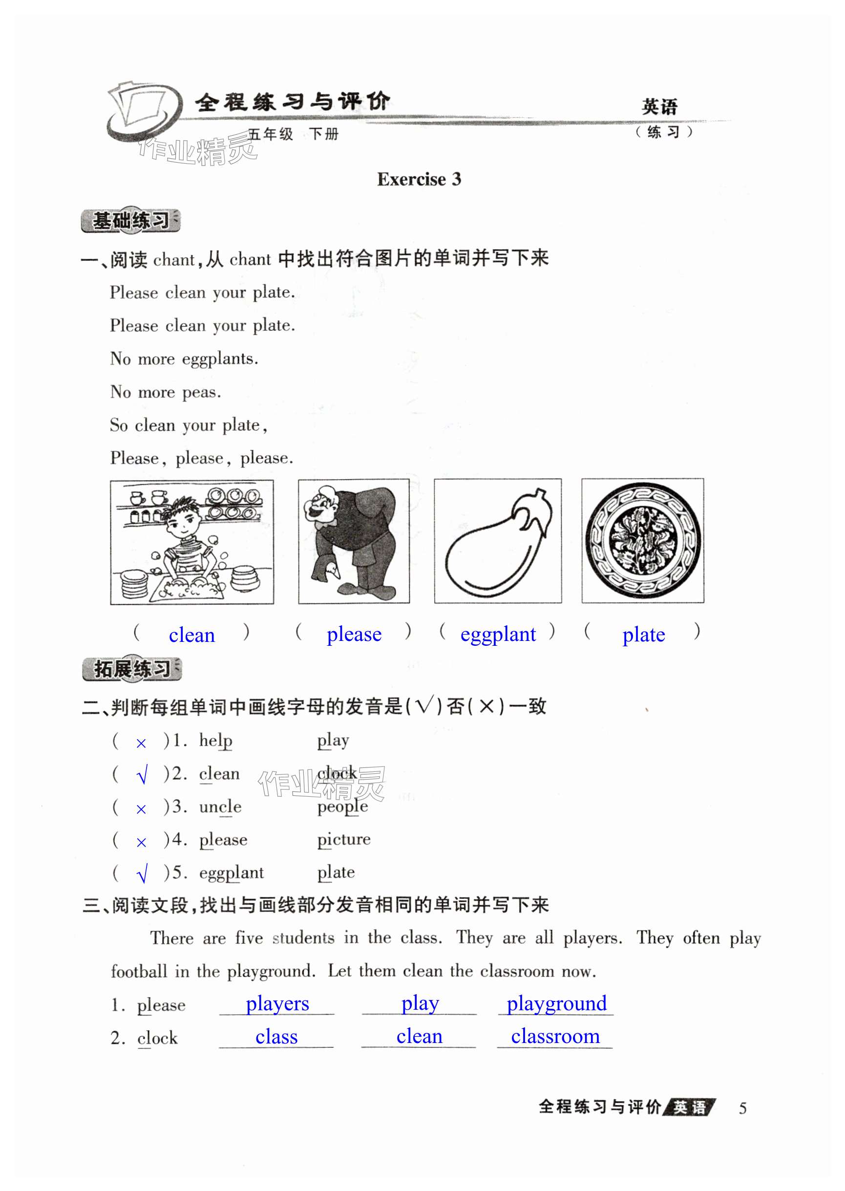 注:目前有些书本章节名称可能整理的还不是很完善,但都是按照顺序排列的,请同学们按照顺序仔细查找。练习册 2025年全程练习与评价五年级英语下册人教版练习版 答案主要是用来给同学们做完题方便对答案用的,请勿直接抄袭。