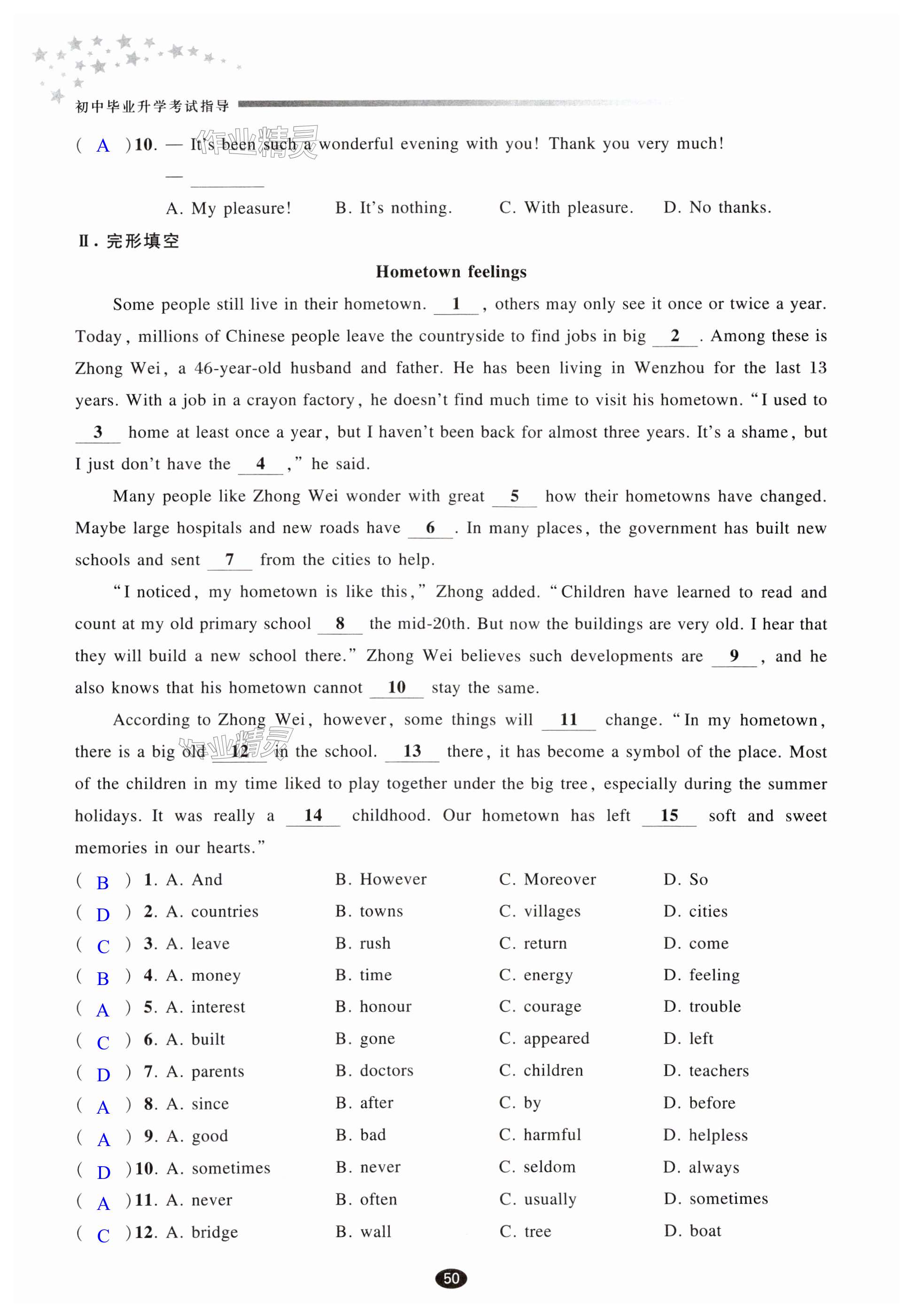 注:目前有些书本章节名称可能整理的还不是很完善,但都是按照顺序排列的,请同学们按照顺序仔细查找。练习册 2025年初中毕业升学考试指导英语 答案主要是用来给同学们做完题方便对答案用的,请勿直接抄袭。