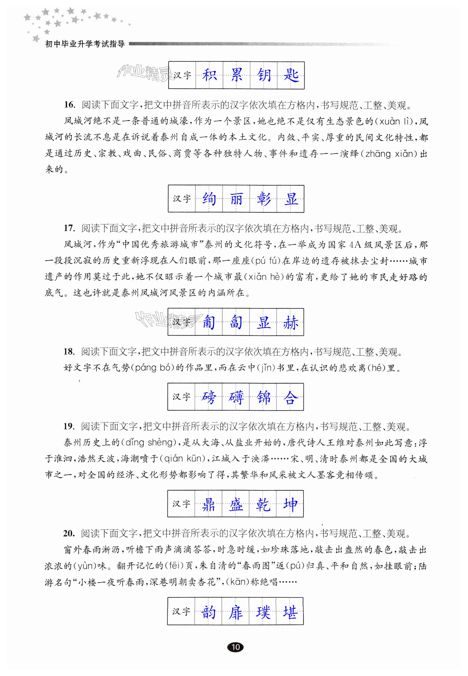 注:目前有些书本章节名称可能整理的还不是很完善,但都是按照顺序排列的,请同学们按照顺序仔细查找。练习册 2025年初中毕业升学考试指导语文 答案主要是用来给同学们做完题方便对答案用的,请勿直接抄袭。