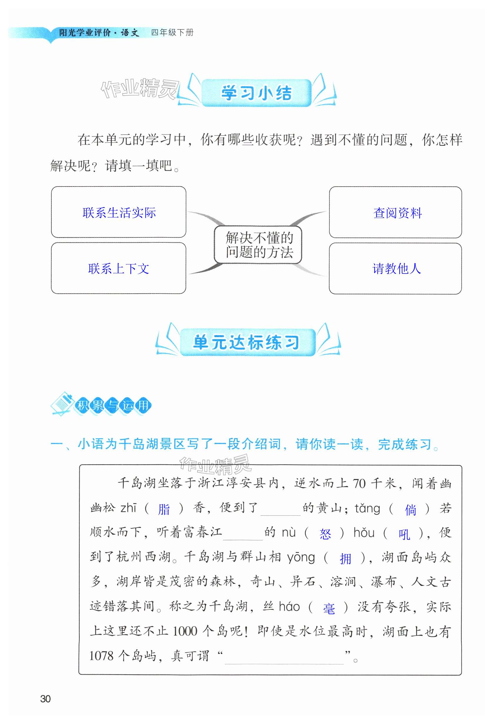 注:目前有些书本章节名称可能整理的还不是很完善,但都是按照顺序排列的,请同学们按照顺序仔细查找。练习册 2025年阳光学业评价四年级语文下册人教版 答案主要是用来给同学们做完题方便对答案用的,请勿直接抄袭。