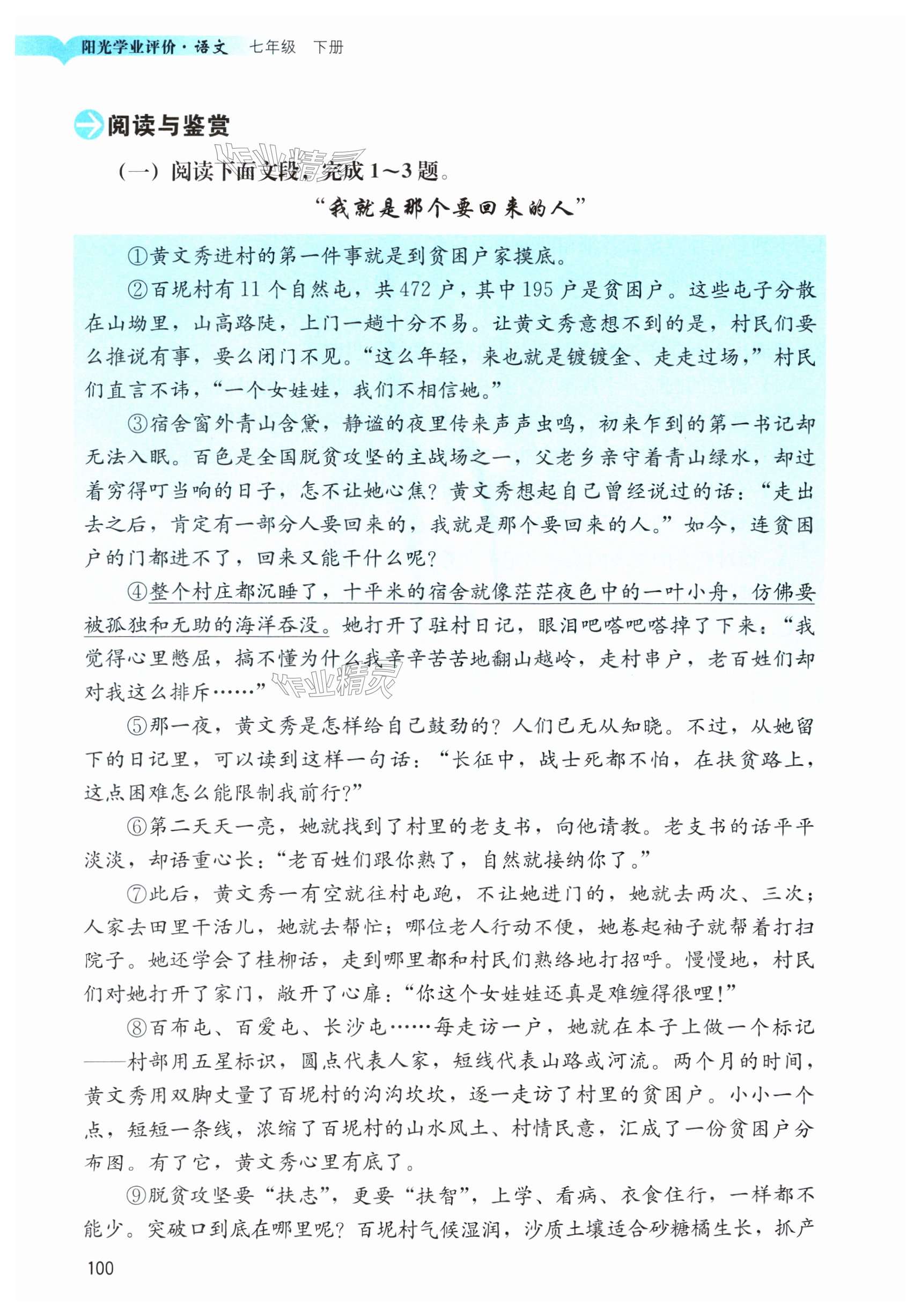 注:目前有些书本章节名称可能整理的还不是很完善,但都是按照顺序排列的,请同学们按照顺序仔细查找。练习册 2025年阳光学业评价七年级语文下册人教版 答案主要是用来给同学们做完题方便对答案用的,请勿直接抄袭。