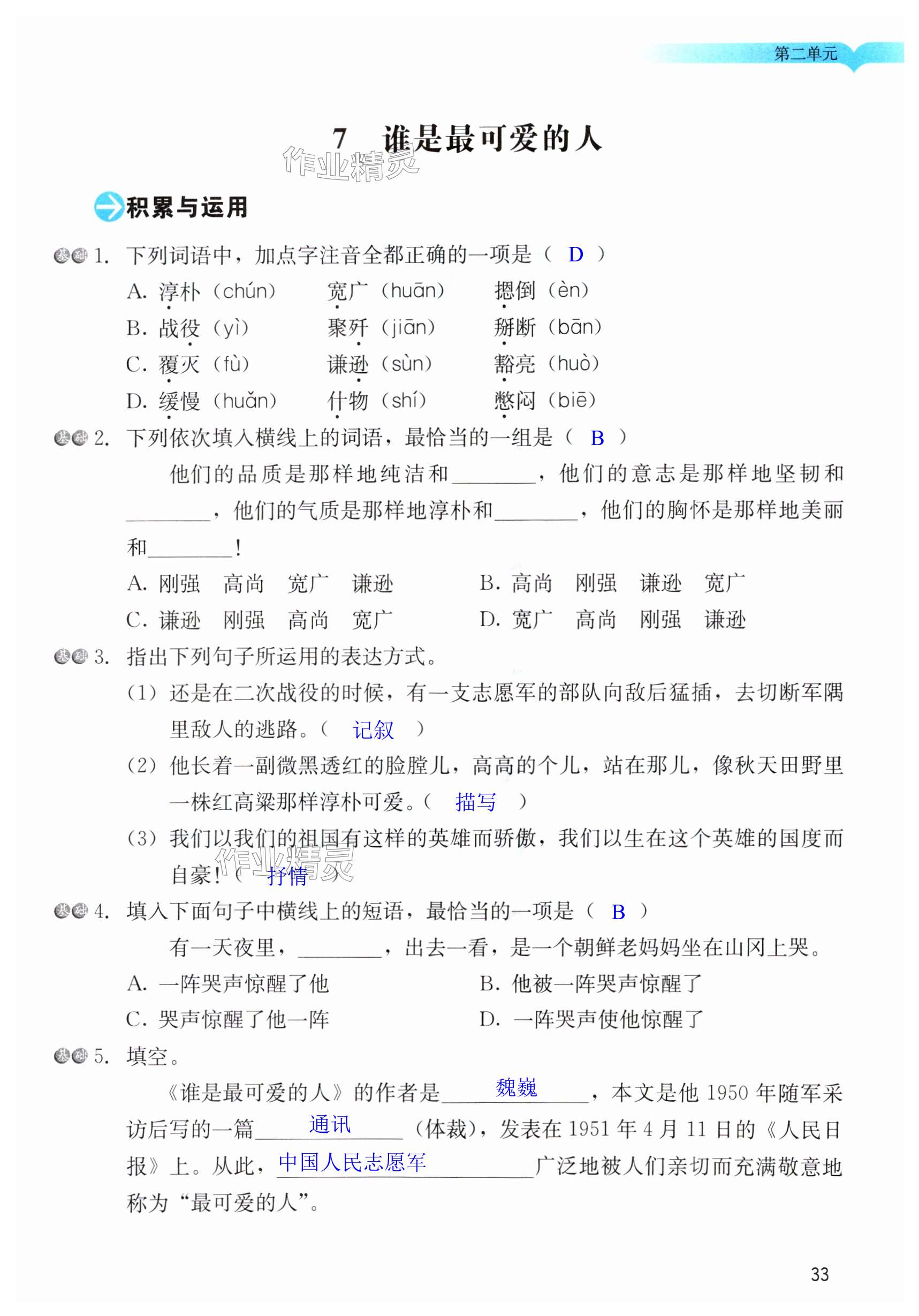 注:目前有些书本章节名称可能整理的还不是很完善,但都是按照顺序排列的,请同学们按照顺序仔细查找。练习册 2025年阳光学业评价七年级语文下册人教版 答案主要是用来给同学们做完题方便对答案用的,请勿直接抄袭。