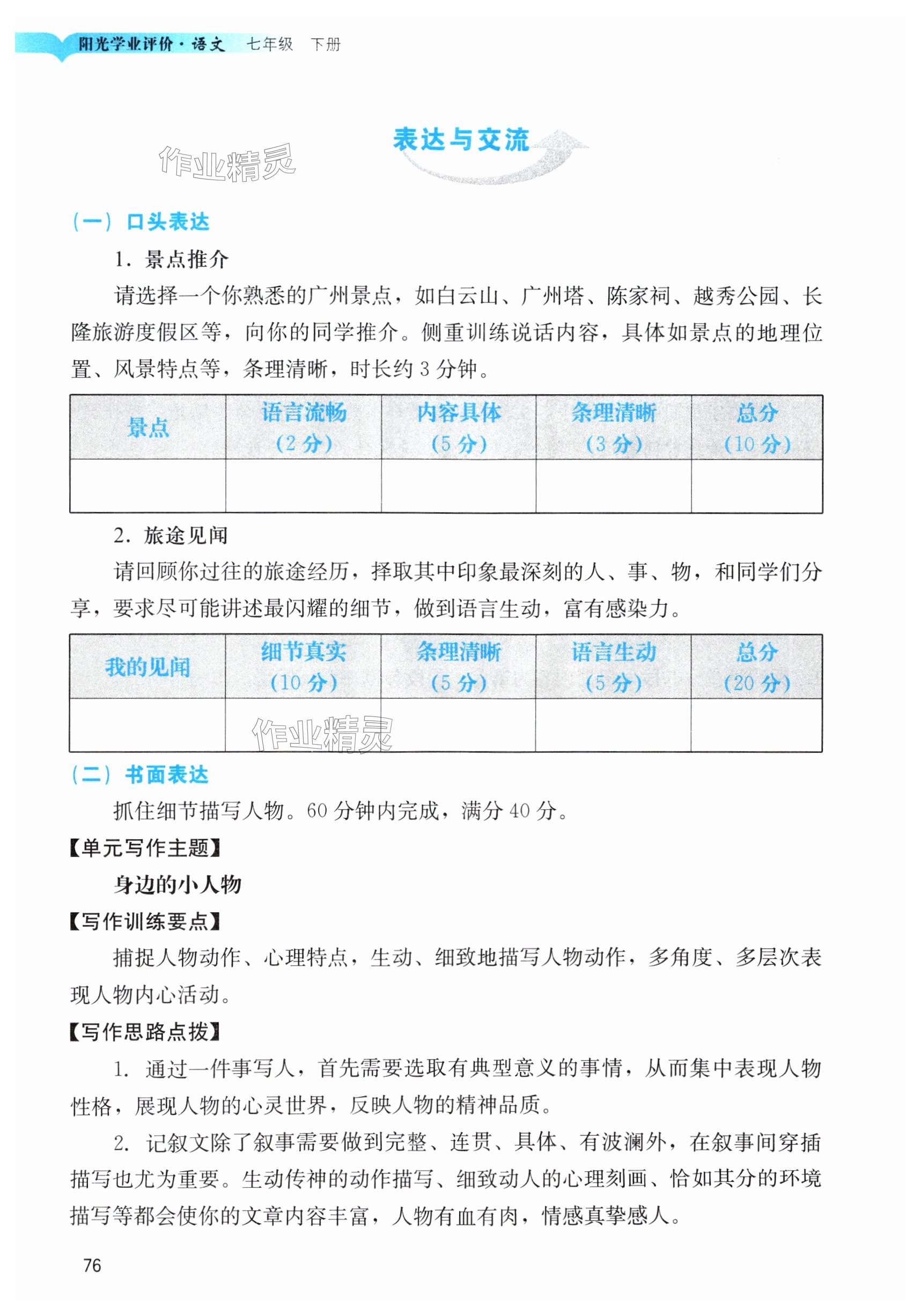 注:目前有些书本章节名称可能整理的还不是很完善,但都是按照顺序排列的,请同学们按照顺序仔细查找。练习册 2025年阳光学业评价七年级语文下册人教版 答案主要是用来给同学们做完题方便对答案用的,请勿直接抄袭。