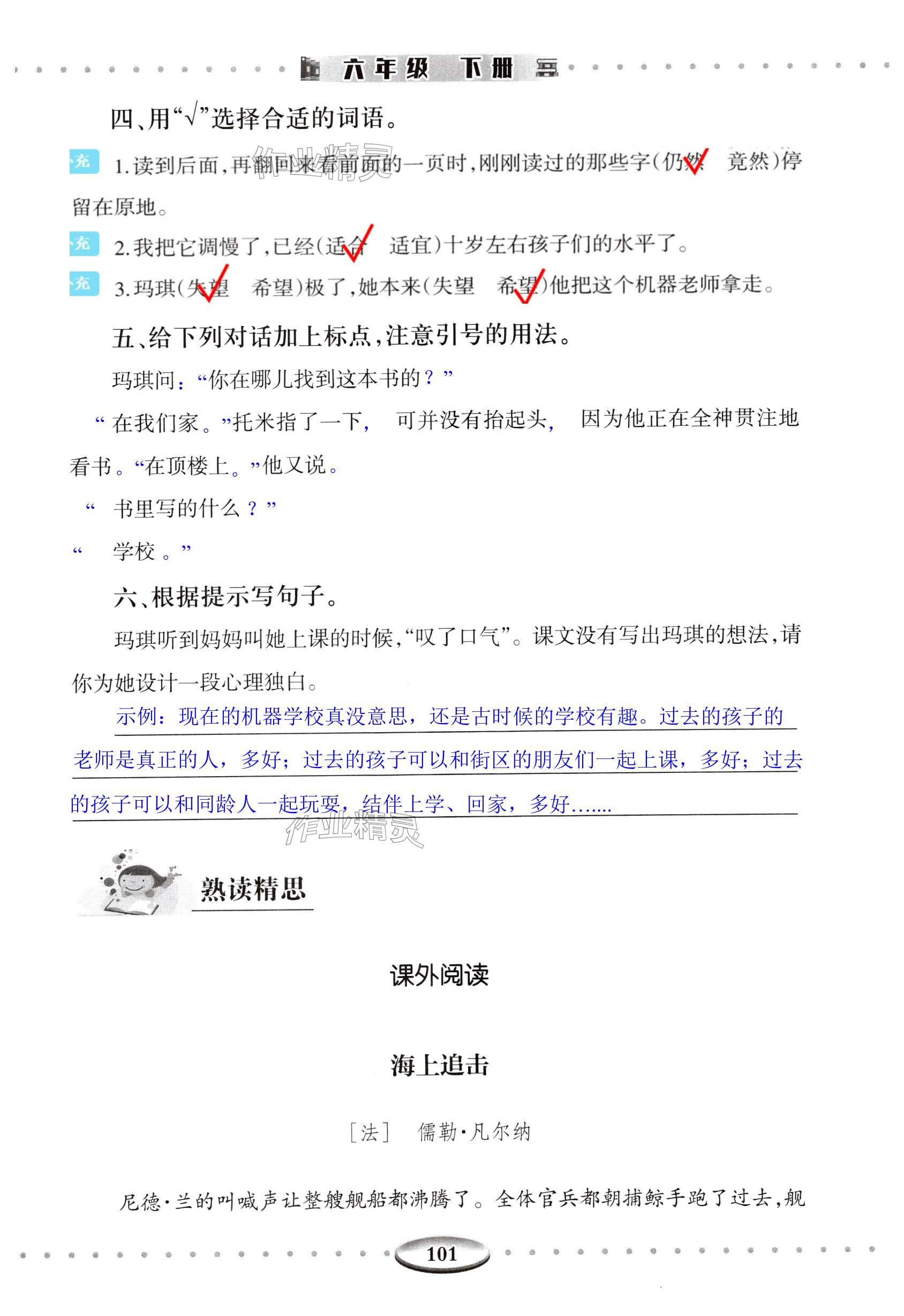 注:目前有些书本章节名称可能整理的还不是很完善,但都是按照顺序排列的,请同学们按照顺序仔细查找。练习册 2025年智慧学习导与练明天出版社六年级语文下册人教版 答案主要是用来给同学们做完题方便对答案用的,请勿直接抄袭。