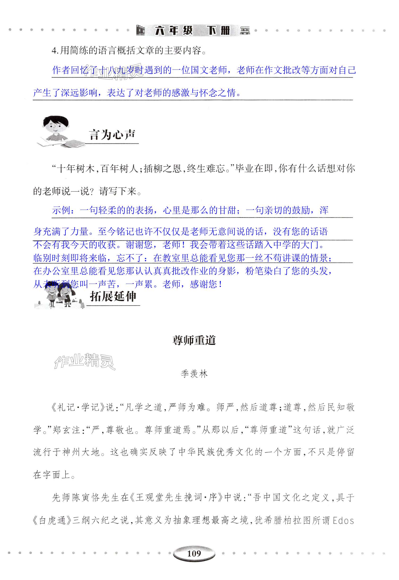 注:目前有些书本章节名称可能整理的还不是很完善,但都是按照顺序排列的,请同学们按照顺序仔细查找。练习册 2025年智慧学习导与练明天出版社六年级语文下册人教版 答案主要是用来给同学们做完题方便对答案用的,请勿直接抄袭。