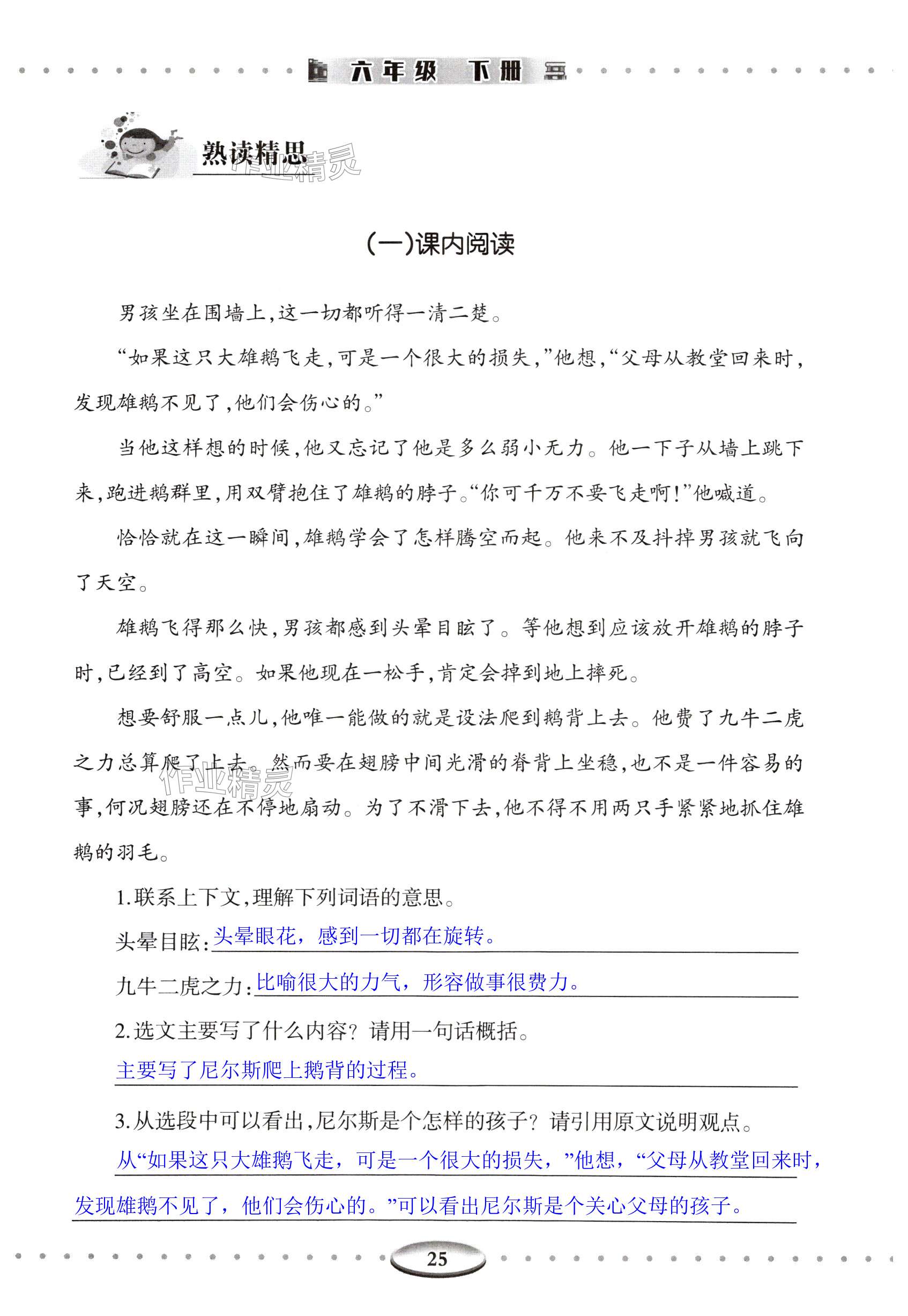 注:目前有些书本章节名称可能整理的还不是很完善,但都是按照顺序排列的,请同学们按照顺序仔细查找。练习册 2025年智慧学习导与练明天出版社六年级语文下册人教版 答案主要是用来给同学们做完题方便对答案用的,请勿直接抄袭。