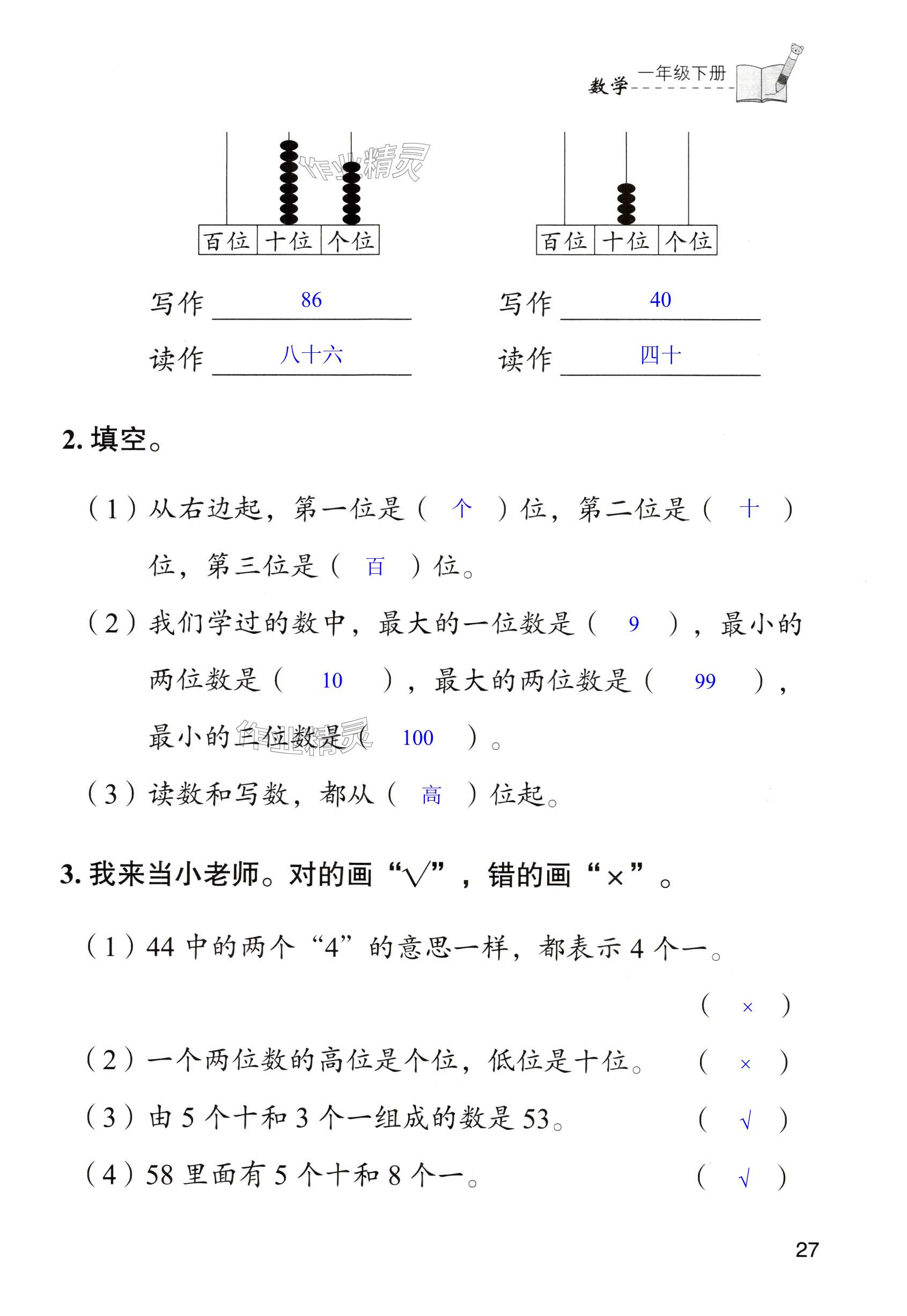 注:目前有些书本章节名称可能整理的还不是很完善,但都是按照顺序排列的,请同学们按照顺序仔细查找。练习册 2025年三维智慧学习一年级数学下册人教版 答案主要是用来给同学们做完题方便对答案用的,请勿直接抄袭。
