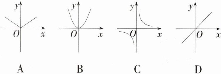 ∵B(1,1),C(2,4),当x > 0时,y随x的增大而增大,而B(1,1)在直线y = x上,C(2,4)不在直线y = x上,所以图象不会是直线,故A错误.