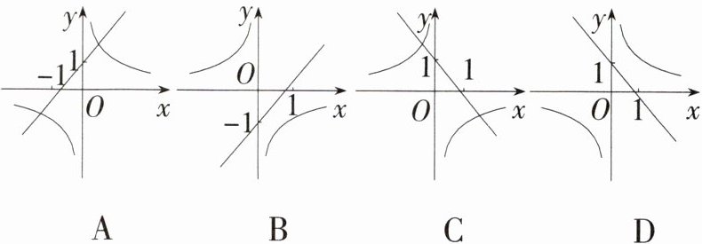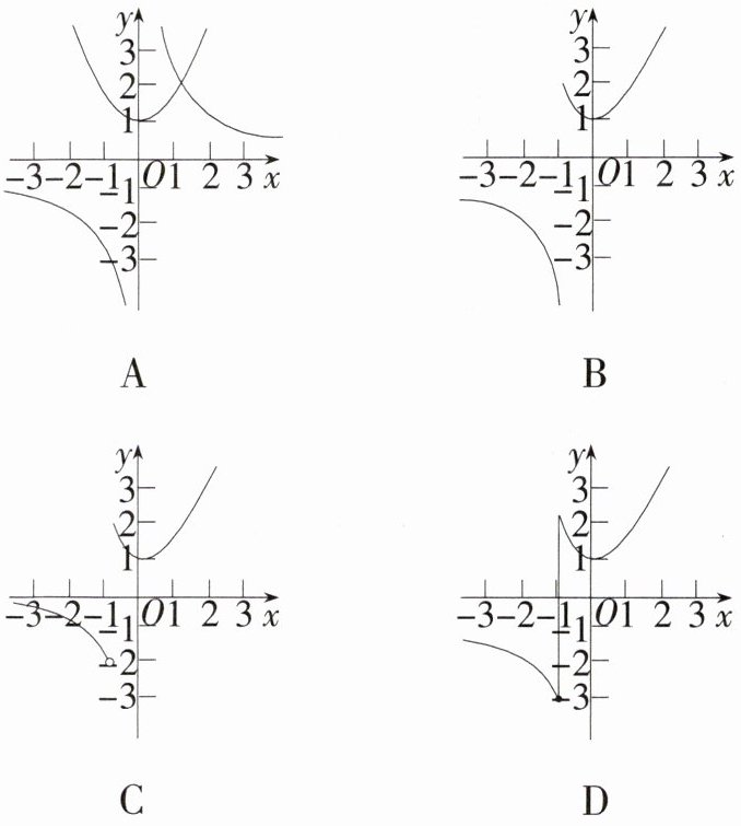 C 提示:y = x² + 1,图象是开口向上的抛物线,对称轴是y轴,顶点坐标是(0,1),当x ≥ - 1时,B,C,D正确;y = $\frac{2}{x}$,图象在第一、三象限,当x < - 1时,C正确.综上,C符合.
