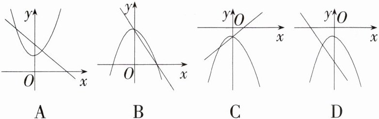 B 提示:A.由函数y = ax + c的图象可得a < 0,c > 0,由二次函数y = ax² + c的图象可得a > 0,c > 0,错误;B.由函数y = ax + c的图象可得a < 0,c > 0,由二次函数y = ax² + c的图象可得a < 0,c > 0,正确;C.由函数y = ax + c的图象可得a > 0,c < 0,由二次函数y = ax² + c的图象可得a < 0,c < 0,错误;D.由函数y = ax + c的图象可得a < 0,c < 0,由二次函数y = ax² + c的图象可得a < 0,c < 0,但函数y = ax + c,y = ax² + c的图象与y轴的交点是同一点,即(0,c),故错误.