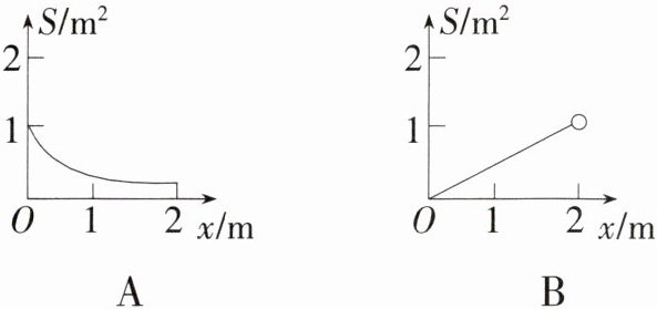 2. 周长是4 m的矩形,它的面积$S(m^{2})$与一边长$x(m)$的函数图象大致是 ( )