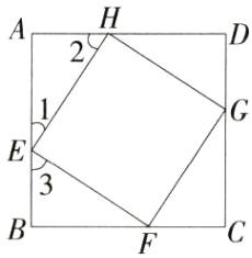 $y=2x^{2}-4x + 4$ 提示:如图.$\because$四边形$ABCD$是边长为 2 的正方形,$\therefore\angle A=\angle B = 90^{\circ}$.$AB = 2$.$\therefore\angle1+\angle2 = 90^{\circ}$,$\because$四边形$EFGH$为正方形,$\therefore\angle HEF = 90^{\circ}$,$EH = EF$.$\therefore\angle1+\angle3 = 90^{\circ}$,$\therefore\angle2=\angle3$.在$\triangle AHE$与$\triangle BEF$中,$\begin{cases}\angle A=\angle B\\\angle2=\angle3\\EH = FE\end{cases}$,$\therefore\triangle AHE\cong\triangle BEF$,$\therefore AE=BF=x$,$AH=BE=2 - x$.在$Rt\triangle AHE$中,由勾股定理,得$EH^{2}=AE^{2}+AH^{2}=x^{2}+(2 - x)^{2}=2x^{2}-4x + 4$,即$y=2x^{2}-4x + 4(0<x<2)$.