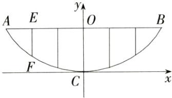 (2)如果水面BC上升3 m(即OA = 3)至水面EF,点E在点F的左侧,求水面宽度EF的长.