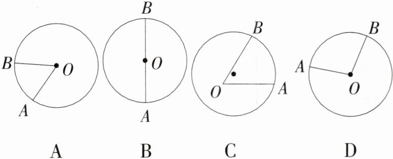 3. 下列图形中,∠AOB不是圆心角的是( )