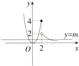 27. (贵港中考)若直线$y = m$($m$为常数)与函数$y=\begin{cases}x^{2}(x\leqslant2),\\\frac{4}{x}(x>2)\end{cases}$的图象恒有三个不同的交点,则常数$m$的取值范围是 ______。