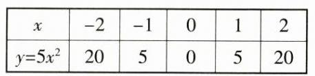 (1)可知此函数关系式为 $y = 5x^{2}$,列表:
