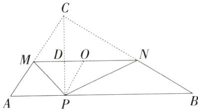 相交 提示:如图,连结 $PC$ 交 $MN$ 于 $D$,则 $PC\perp MN$ 于点 $D$,取 $MN$ 的中点 $O$,连结 $OP$。由题意得 $PD<OP$,$\therefore$ 圆心 $O$ 到直线 $AB$ 的距离小于 $\odot O$ 的半径,$\therefore$ 以 $MN$ 为直径的圆与直线 $AB$ 相交。