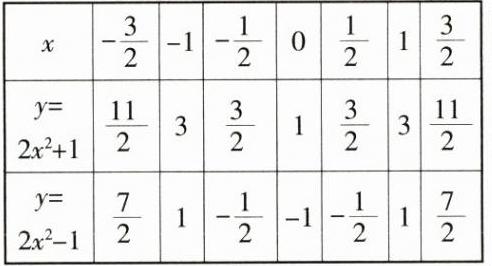2. (教材P10,T1高仿)在同一平面直角坐标系中,画出二次函数$y = 2x^{2}+1,y = 2x^{2}-1$的图象.