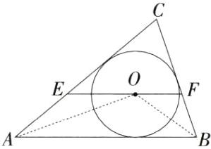 9. 如图,O是△ABC的内心,过点O作EF//AB,与AC,BC分别交于点E,F,则( )