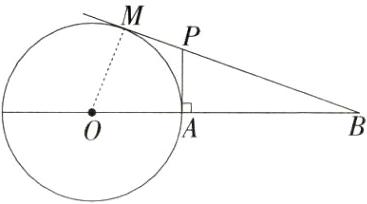 19. 如图,过⊙O外一点B作⊙O的切线BM,M为切点,BO交⊙O于点A,过点A作BO的垂线,交BM于点P,BO = 3,⊙O的半径为1.求MP的长.