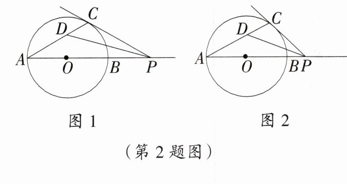 2. 已知:AB为⊙O的直径,P为AB延长线上的任意一点,过点P作⊙O的切线,切点为C,∠APC的平分线PD与AC交于点D.