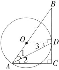 8. 如图,B是⊙O外一点,连结OB,过点B作⊙O的切线BD,切点为D,延长BO交⊙O于点A,过点A作切线BD的垂线,垂足为点C.