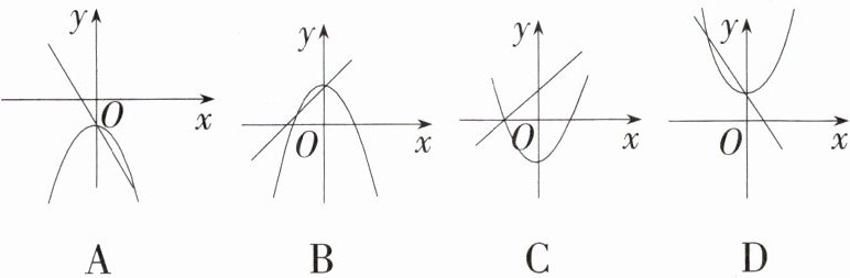 A 提示:A.由抛物线可知,$a<0$,$b<0$.由直线可知,$a<0$,$b<0$,故本选项正确;B.由抛物线可知$a<0$,$b>0$,由直线可知$a>0$,$b>0$,相矛盾,故本选项错误;C.由抛物线可知,$a>0$,$b<0$,由直线可知,$a>0$,$b>0$,相矛盾,故本选项错误;D.由抛物线可知,$a>0$,$b>0$,由直线可知,$a<0$,$b>0$,相矛盾,故本选项错误.