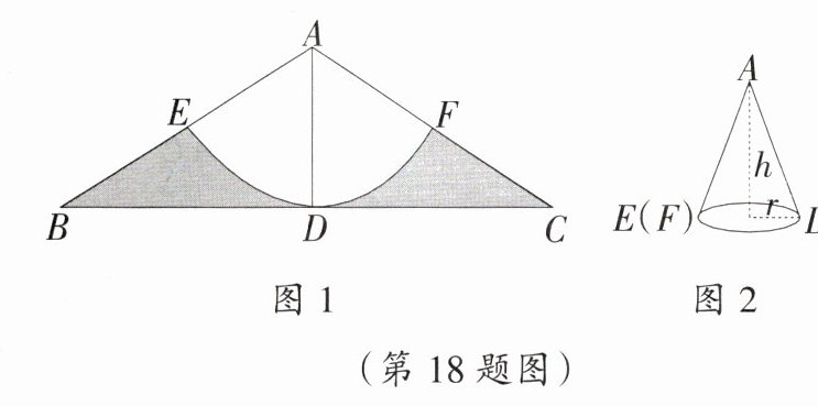 18. (邵阳中考)如图1,在等腰三角形ABC中,∠BAC = 120°,AD是∠BAC的平分线,且AD = 6,以点A为圆心,AD长为半径画$\overset{\frown}{EF}$,交AB于点E,交AC于点F.