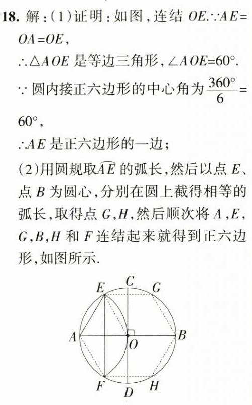 18. 如图,AB,CD是⊙O中互相垂直的两条直径,以A为圆心,OA为半径画弧,与⊙O交于E,F两点.