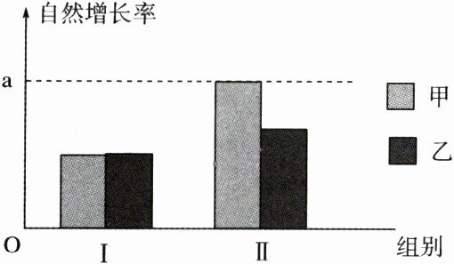 14. 甲和乙是两个种群的生物,它们侵入某相对稳定且气候没有剧烈变化的一个自然生态系统中。下图显示的是它们在增长过程中Ⅰ、Ⅱ两个时期的自然增长率的值(a>0)。下列叙述正确的是 ( )