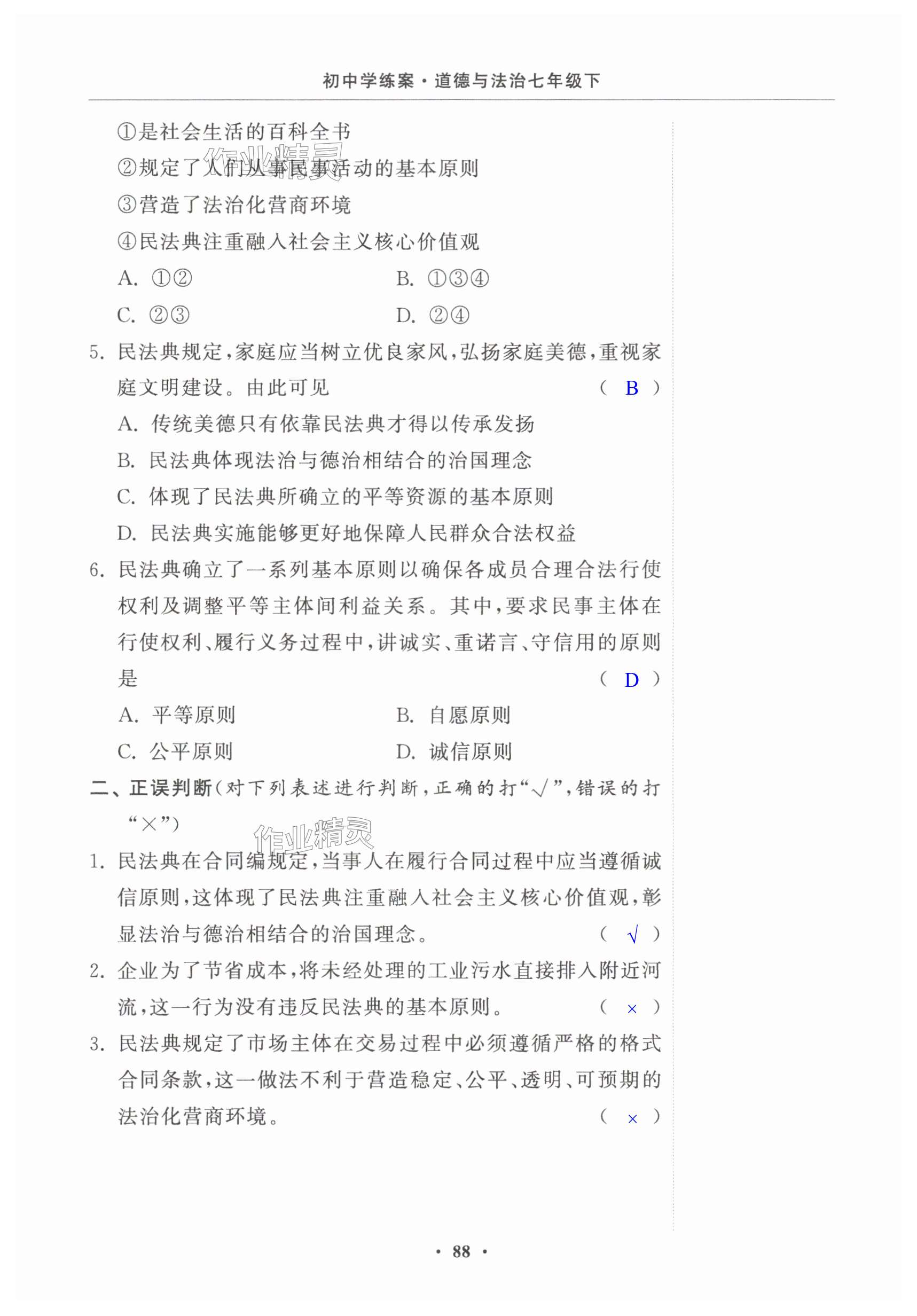 注:目前有些书本章节名称可能整理的还不是很完善,但都是按照顺序排列的,请同学们按照顺序仔细查找。练习册 2025年初中学练案七年级道德与法治下册人教版 答案主要是用来给同学们做完题方便对答案用的,请勿直接抄袭。