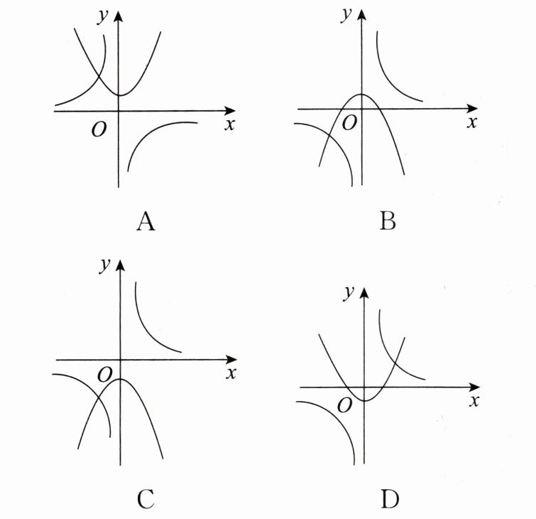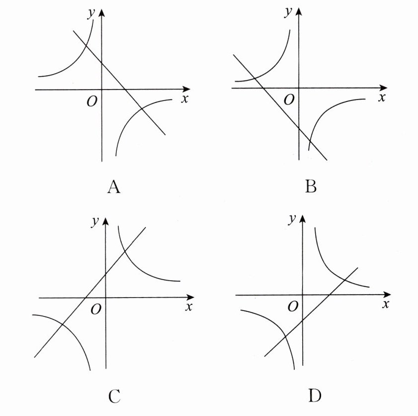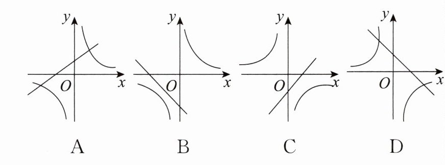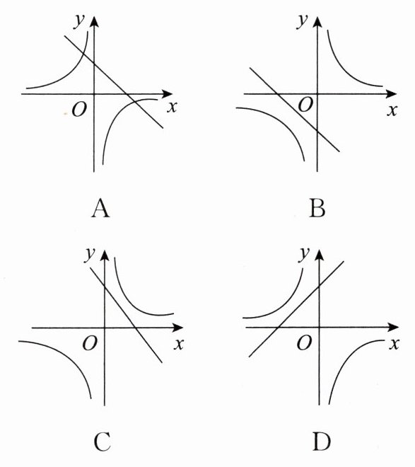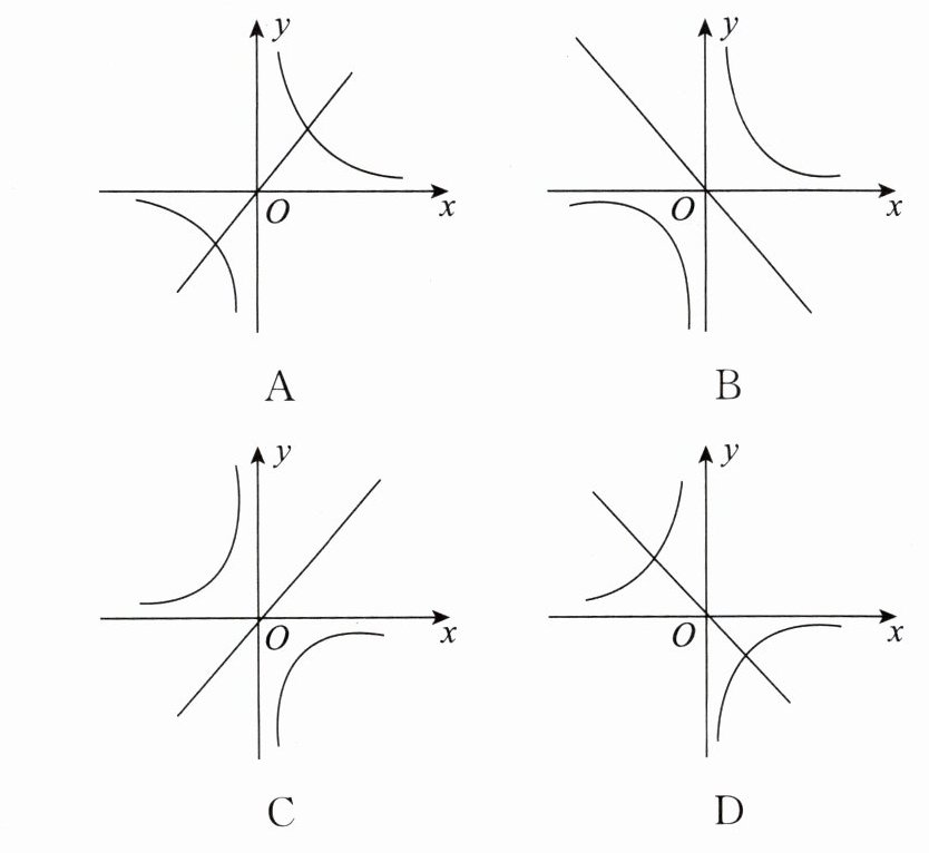 B ①当$k\gt0$时,$-k\lt0$,则双曲线的两支分别位于第二、第四象限,抛物线开口向上,顶点在$y$轴负半轴上;②当$k\lt0$时,$-k\gt0$,则双曲线的两支分别位于第一、第三象限,抛物线开口向下,顶点在$y$轴正半轴上;故选项B符合题意。