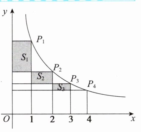 B 由题意可知,点$P_1$,$P_2$,$P_3$,$P_4$坐标分别为$(1,2)$,$(2,1)$,$(3,\frac{2}{3})$,$(4,\frac{1}{2})$。所以由反比例函数的几何意义可知:$S_1 + S_2+S_3 = 1\times(2-\frac{1}{2}) = 1.5$。