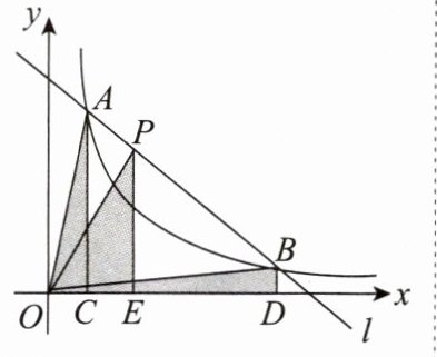 4. 如图,直线$l$和双曲线$y = \frac{k}{x}(k > 0)$交于$A$,$B$两点,$P$是线段$AB$上的点(不与$A$,$B$重合),过点$A$,$B$,$P$分别向$x$轴作垂线,垂足分别是$C$,$D$,$E$,连接$OA$,$OB$,$OP$,设$\triangle AOC$的面积是$S_1$,$\triangle BOD$的面积是$S_2$,$\triangle POE$的面积是$S_3$,则( )